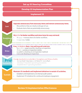 5S is a workplace organisation method based on a Japanese quality management concept that companies may use to achieve a clean and organised workplace. It provides a systematic approach to achieving good housekeeping and offers opportunities for continual improvement and enhanced productivity.